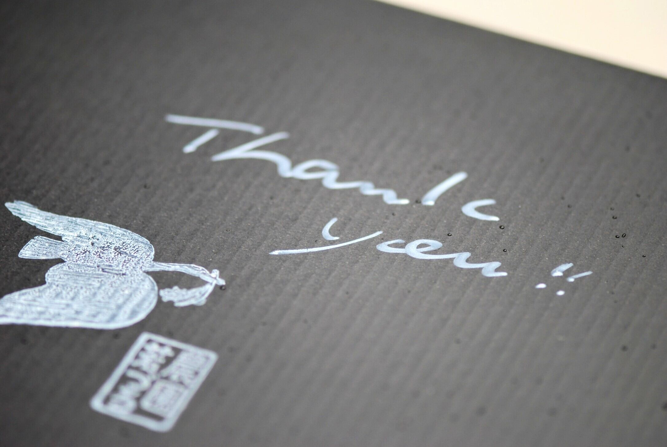 フォーマル感のある箱には、白い手書き文字でメッセージを書き添えます。