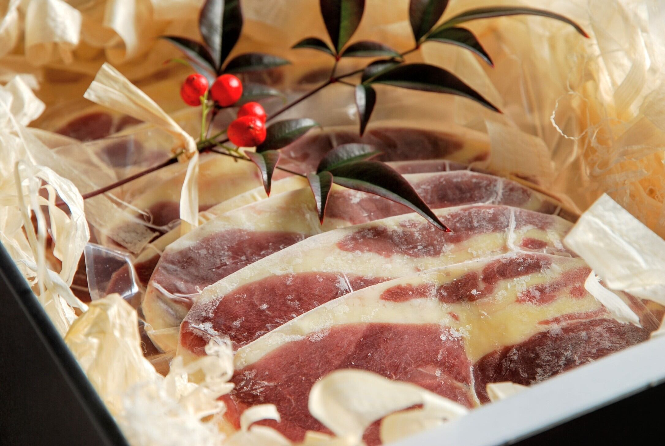 もちろん、商品の保護も十分に考慮しています。ふわふわスライスは、カモのお肉をやさしく包んで衝撃から守ります。